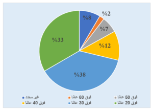 شكل (5): توزيع نسبة الفئات العمرية للجماعة الصحفية الفلسطينية المستهدفة بالموت الاجتماعي